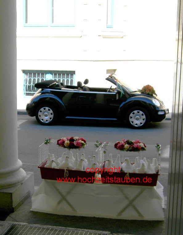 ABLAUF Hochzeitstaubenam Tag der Hochzeit Wir melden uns diskret vor Beginn der Hochzeit unter Nennung von unserem Nachnamen (Schwarzhuber) Wir besprechen zusammen wo die Tauben hingestellt werden soll (Hintergrund Platz usw.) Sie gehen beruhigt in das Standesamt oder in die Kirche Ihr Hochzeitsgeschenk ist da !!!
